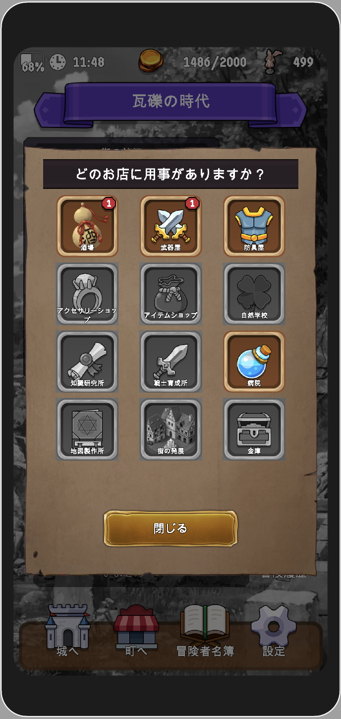 強い武器や強い職業などは街を発展させる事で得られるのです。