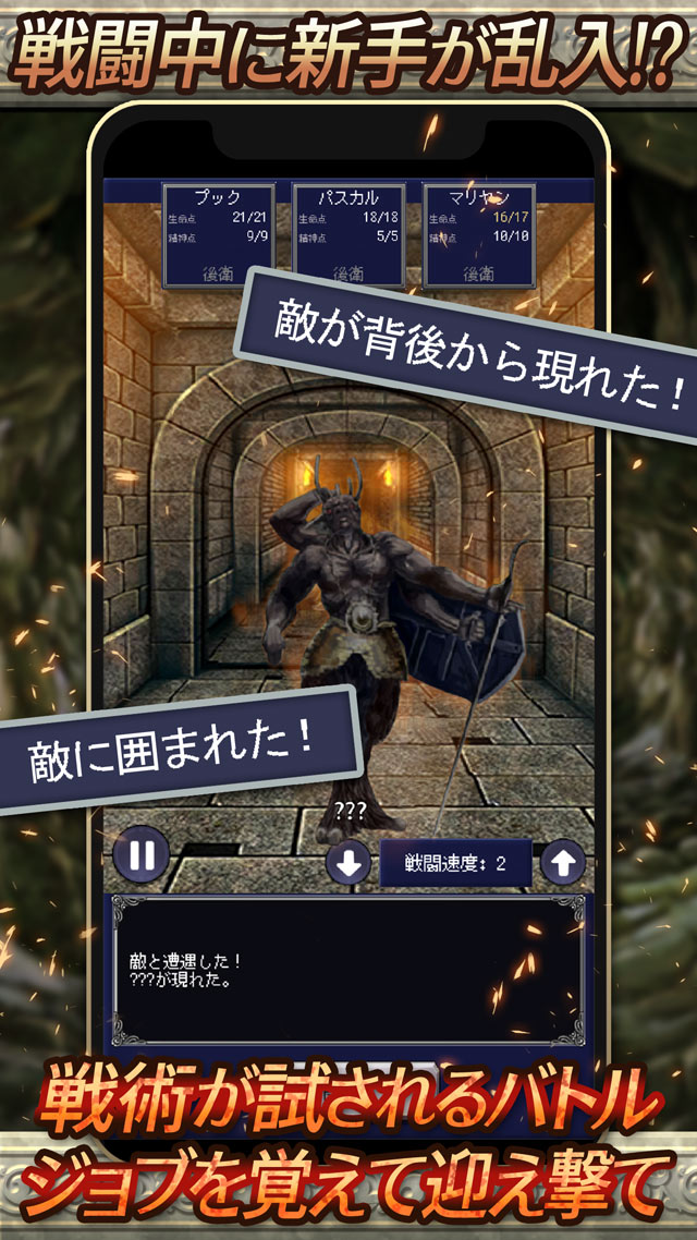 今作からは背後から攻撃されたり、戦闘中に敵の数のほうが多くなると包囲されたりして後列も攻撃対象になってしまいます。